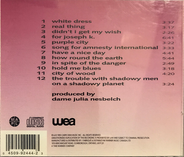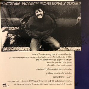 Wiseman's first solo album post-Blue Rodeo and Edie Brickell finally marries his unusual melodies and quirky lyrical concerns with unexpectedly beautiful results. From the opening Dylan-esque lilt of "White Dress" through the chilling "Song For Amnesty International" to the schizoid title track, Dame Julia Nesbelch's poetic production guides Wiseman's acid-tinged sketchings into stunningly evocative tracks, combining folk, jazz, rock, and blues into a seamless collection. The political attacks are still present ("Have A Nice Day" skewers former Western Canada Concept Party leader Douglas Christie), but the absolute highlight is the unforgettably lyrical "For Joseph K.", a haunting eulogy to a great friend, marked by minimalist guitar picking that renders Wiseman's tristesse genuinely devastating. Encompassing rape, mass murder, third world torture, the rewriting of history, and a helpless world in which one can only struggle to stay afloat, City Of Wood is that rarest of things: an emotional powerhouse that actually conveys the angst, sorrow, and love at war within its artist. Truly remarkable.
