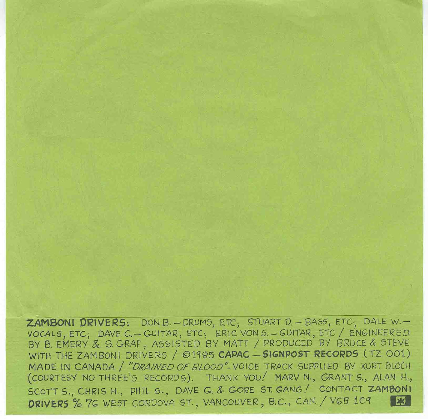 Zamboni Drivers - Skating Ghost b/w Drained of Blood