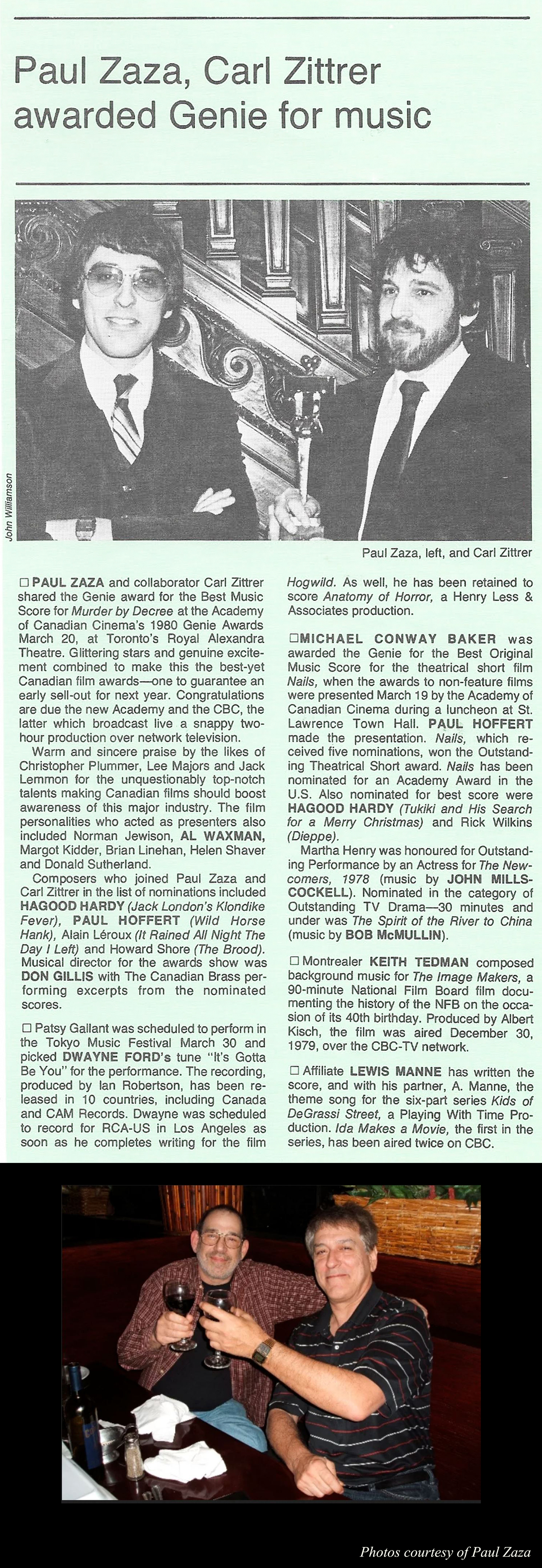 Murder by Decree received eight Genie Award nominations and won five, including Lead Actor (Christopher Plummer), Supporting Actress (Geneviève Bujold), Direction (Bob Clark), Film Editing (Stan Cole), and Music Score (Carl Zittrer and Paul Zaza).