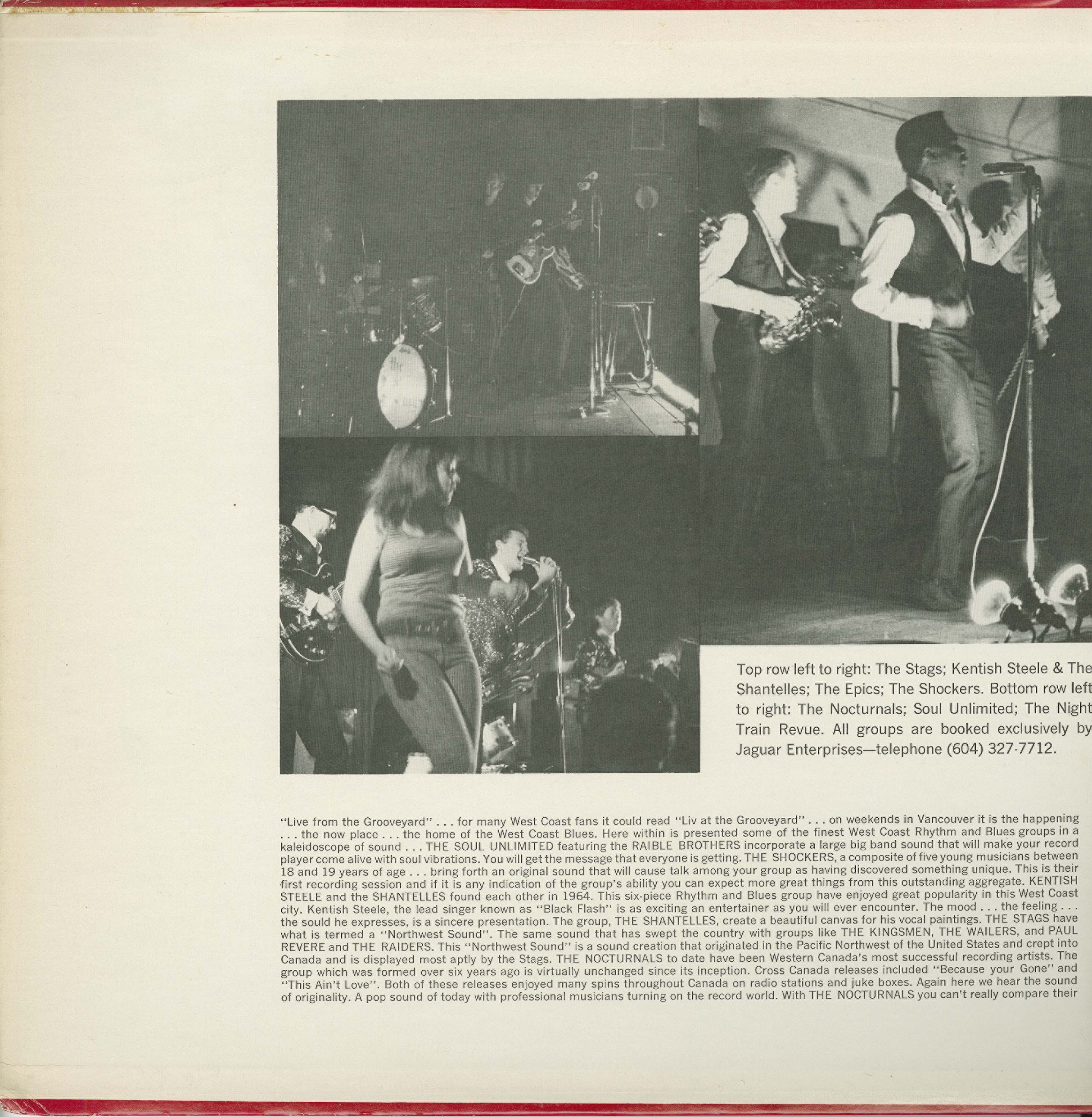 It's hard to believe that New Westminster could be the heart of the R&B Scene, but there it was, the mid 60's, and IKE AND TINA TURNER were on the bill! The former Hollywood Bowl, under new ownership of Les Vogt and the management of Douglas Miller, became the short lived Grooveyard, and took its rightful place in local music history. MARVIN GAYE, ETTA JAMES, LITTLE JUNIOR PARKER, THE SPINNERS, and BO DIDDLEY performed there, as well as hot Northwest groups THE KINGSMEN, PAUL REVERE AND THE RAIDERS, DON AND THE GOODTIMES, and even THE SONICS. Most importantly, The Grooveyard gave some of Vancouver's hottest acts a stage and, on some very special evenings, you could see up to ten live bands and dance 'til you dropped. It just didn't get any better. The original album was the brainchild of Les Vogt, band manager, concert promoter, rockabilly performer, and owner of the Grooveyard. He thought the album would generate more publicity for the club and the bands in his management stable. He took his idea to musician and song writer Tom Northcott and local entrepreneur Jack Herschorn at their offices, where they operated New Syndrome Records.