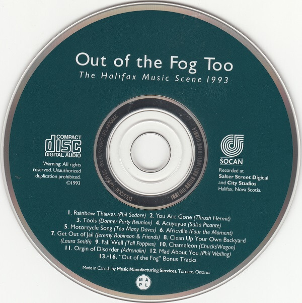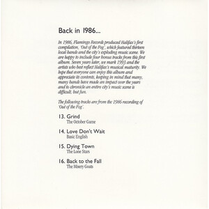 The following tracks are from the 1986 recording of Out of the Fog, Halifax’s first independent local compilation. The credits and notes are taken from that compilation.