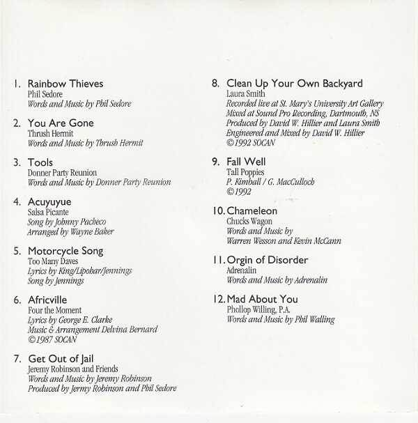 Tracks 1–12 recorded at Salter Street Digital, Brunswick Street, Halifax, Nova Scotia, except ‘Clean Up Your Own Backyard’. All tracks DDD.