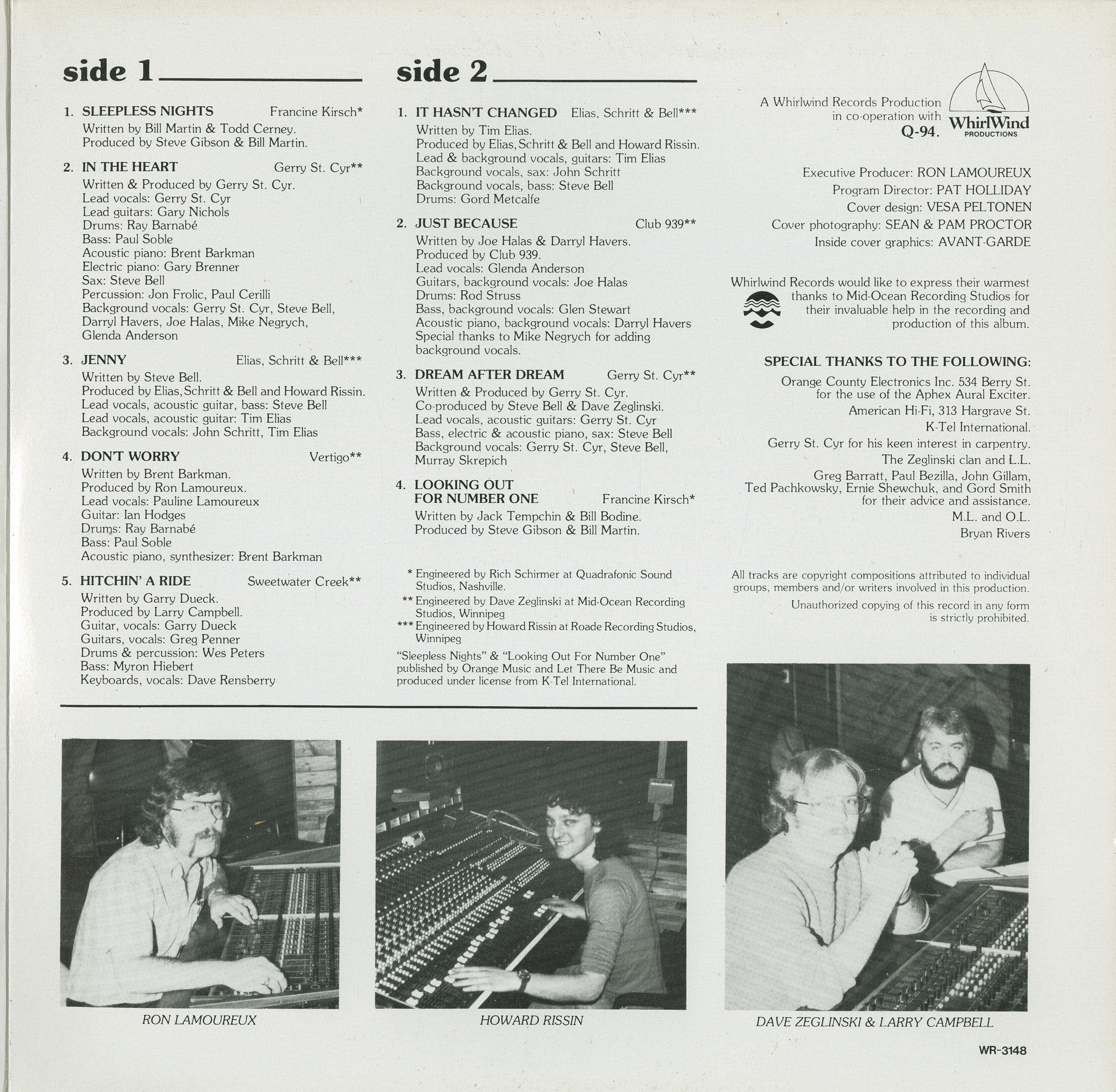 Engineered by Dave Zeglinski at Mid-Ocean Recording Studios, Winnipeg, Manitoba