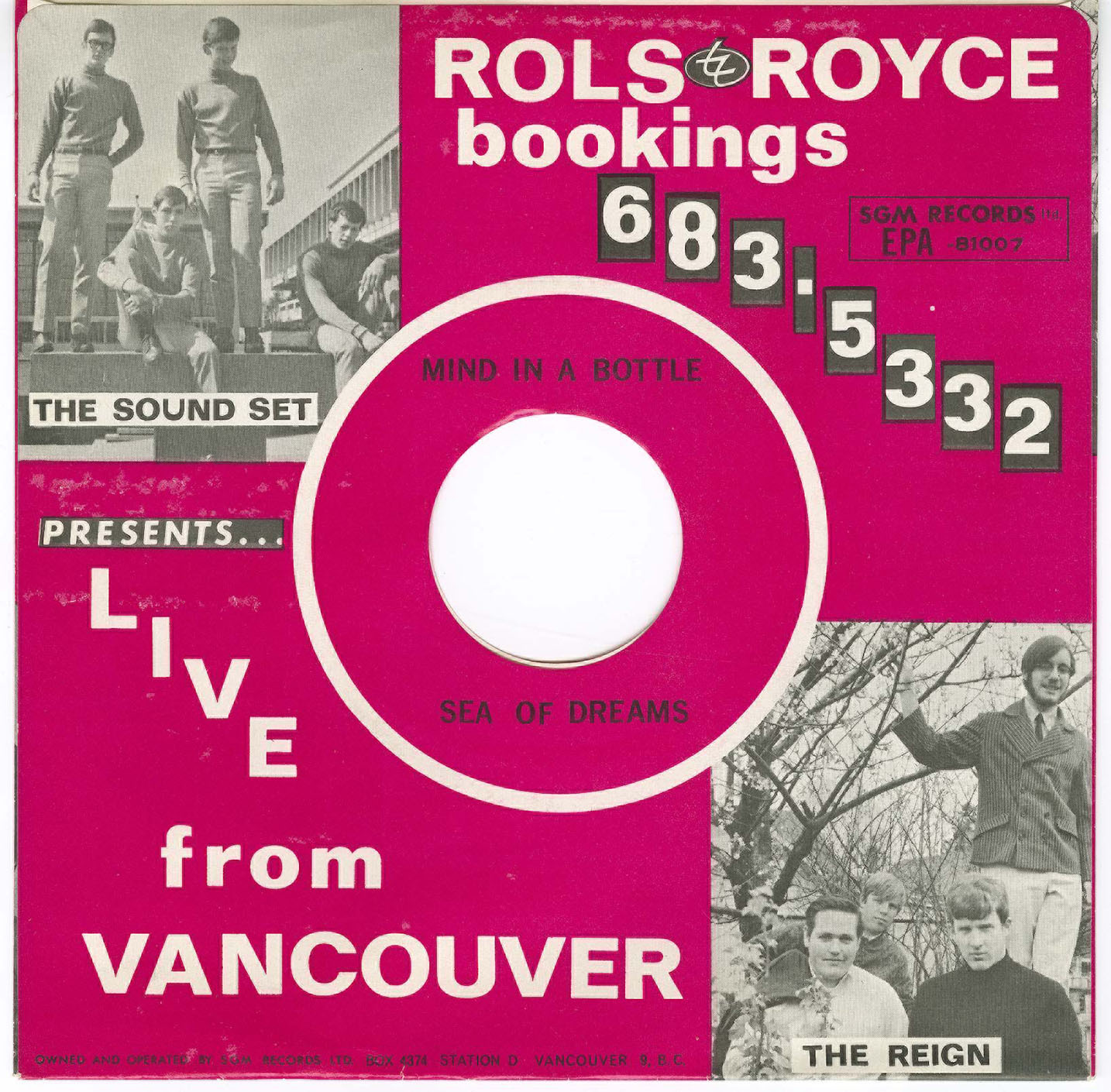 We believe the drummer on “Sea Of Dreams” (who was absent from the photo) is Jack Matches. We were very young at the time so the record was exciting. Unfortunately we weren’t rocketed to the top of the charts with it. After The Reign fizzled out, Rob, Ken, Gerry (Sound Set) and I formed a band called Icabod Crane and played around the Vancouver scene. No recordings.