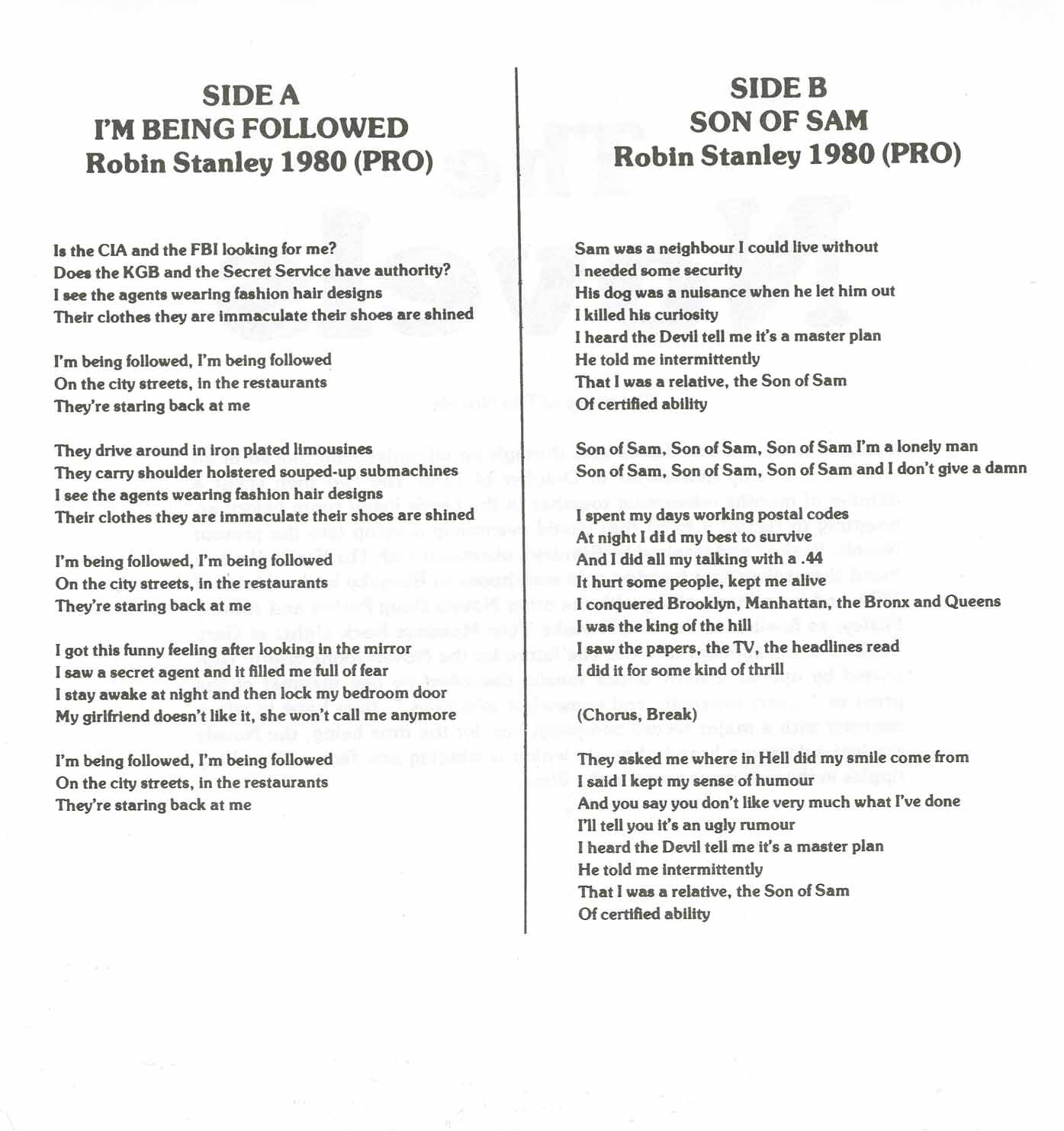 Novels - I'm Being Followed b/w Son of Sam (picture sleeve)