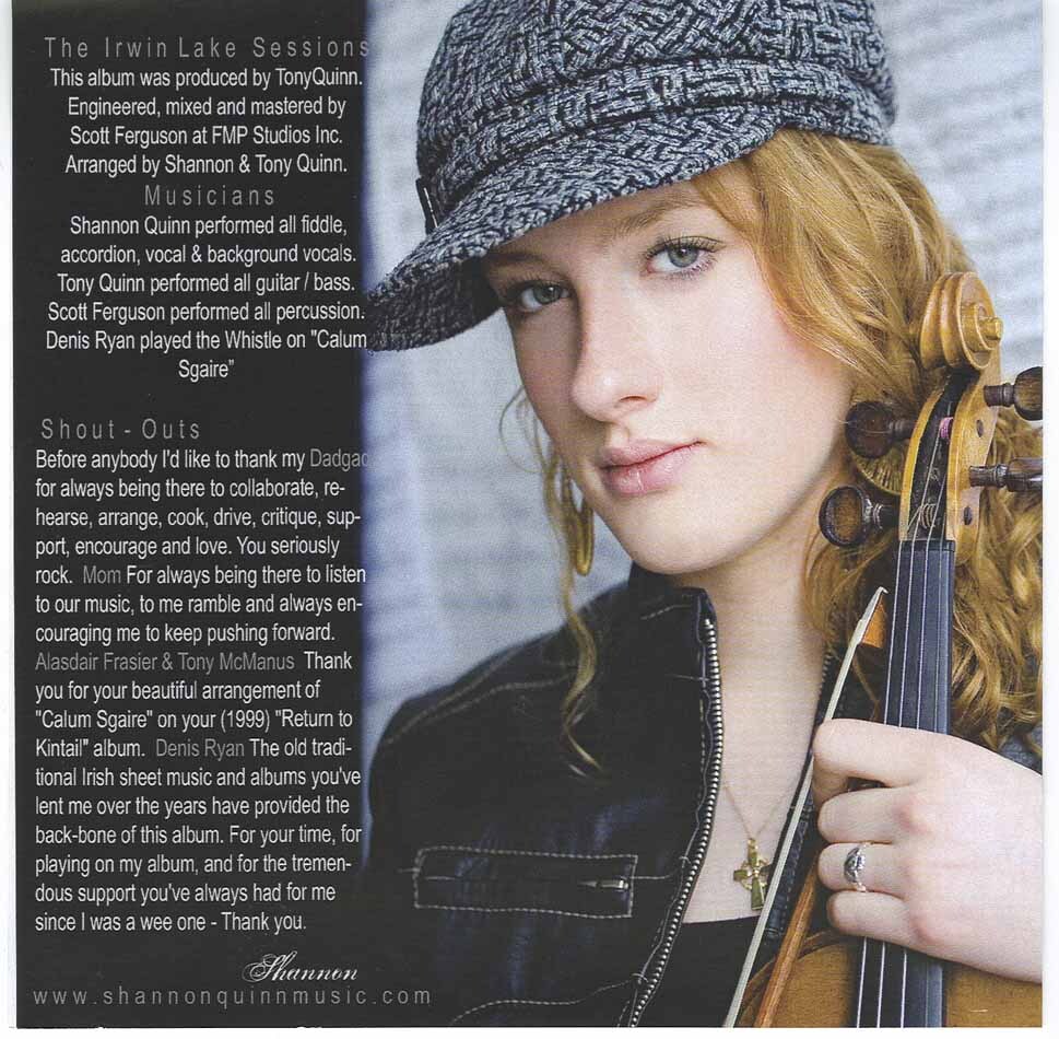 Shannon Quinn is the latest young musician making her mark on Canada through performance. At 20 years of age, Shannon Quinn is a multi-instrumentalist, vocalist, dancer and composer. Having been performing with her father Tony for 12 years, she has been featured among many successful recording artists, and in turn has become one herself. She was born and raised in beautiful Halifax, Nova Scotia, a place full of musical talent.