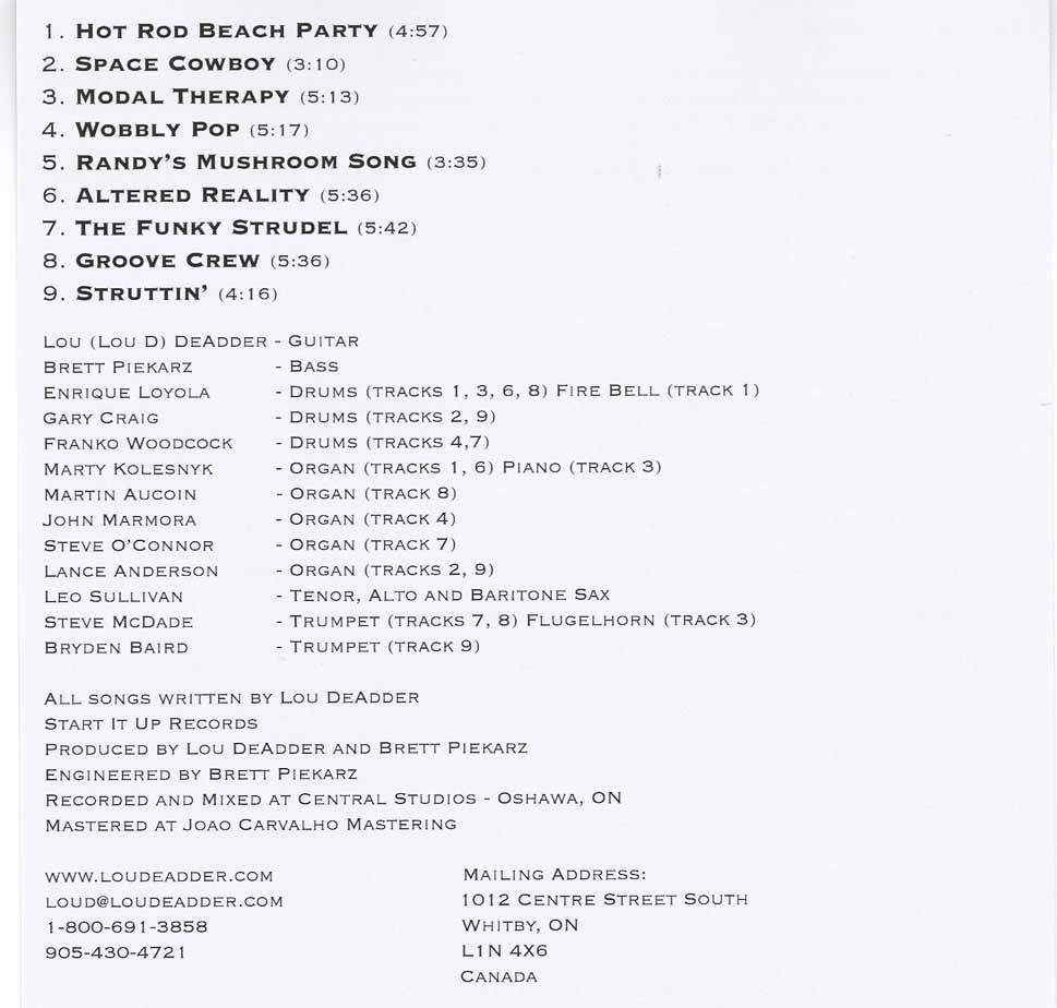 Lou has written all nine highly original numbers; Lou; guitar, has a core band of three players; Brett Piekarz; bass and Enrique Loyola; drums, joining them on this album are; Leo Sullivan; tenor, alto & baritone saxophone, Steve McDade; trumpet, flugelhorn, Bryden Baird; trumpet, Marty Kolesnyk; Martin Aucoin; John Marmora; Steve O’Connor; Lance Anderson; organ, & Gary Craig; Franko Woodcock; drums.