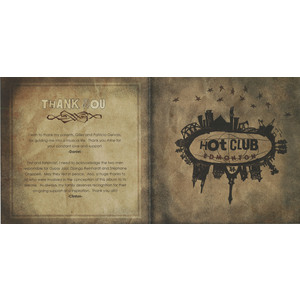 Clinton Pelletier and Daniel Gervais were first drawn to Gypsy Jazz in 2003. Clinton was recording his debut album at the time and wanted to cover this style. At that point, Clinton and Daniel decided to fully immerse themselves in Gypsy Jazz. A trip to Europe in the spring of 2006 allowed them to further experience this music from the very source. Inspired at the site of Stéphane Grappelli's columbarium in Paris, Daniel composed Hommage à Grappelli. In the summer of 2009, Clinton and Daniel returned to France for a tour with the French-Canadian dance troupe Zéphyr. On this trip, they were fortunate to meet a wonderful French Gypsy Jazz violinist, Matthias Guerry. This musical encounter led to an impromptu concert and a very authentic experience, which was an excellent background for the completion of the Hot Club Edmonton debut album.