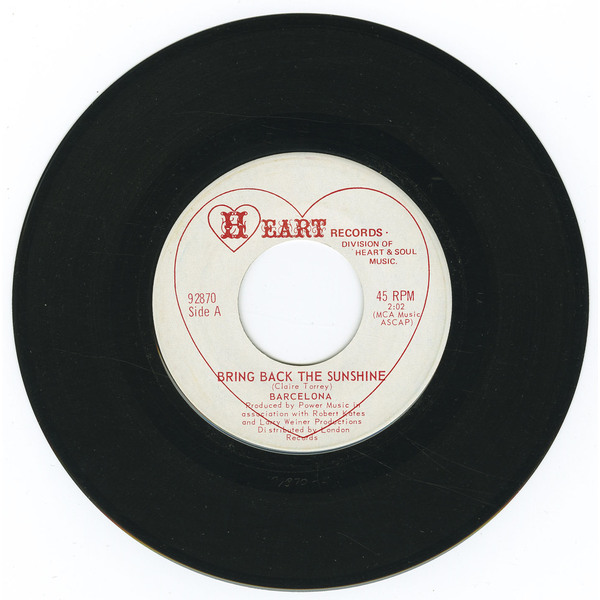 Barcelona - Bring Back the Sunshine b/w I May Have Been a Fool