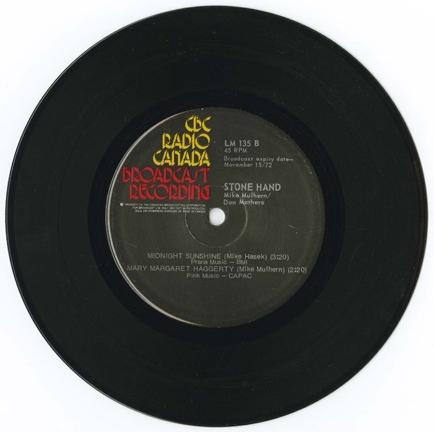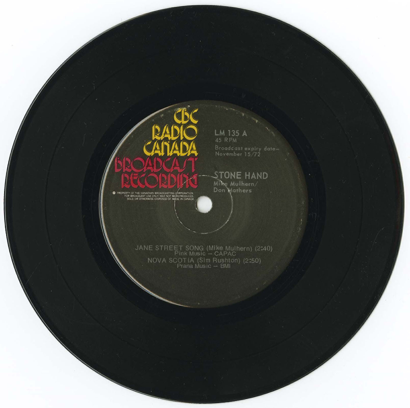 Stone Hand - Jane Street Song/ Nova Scotia b/w Midnight Sunshine/ Mary Margaret Haggerty