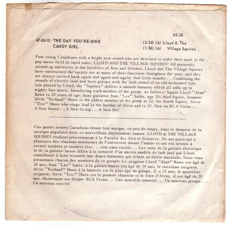 Lloyd & the Village Squires - Candy Girl b/w The Day You're Mine (picture sleeve)