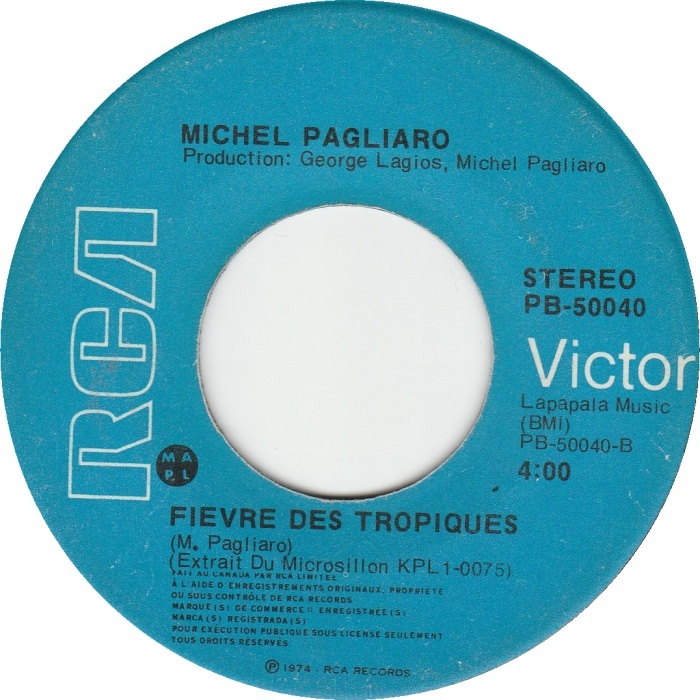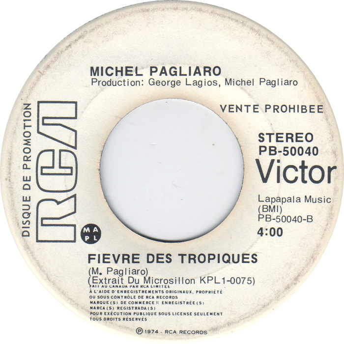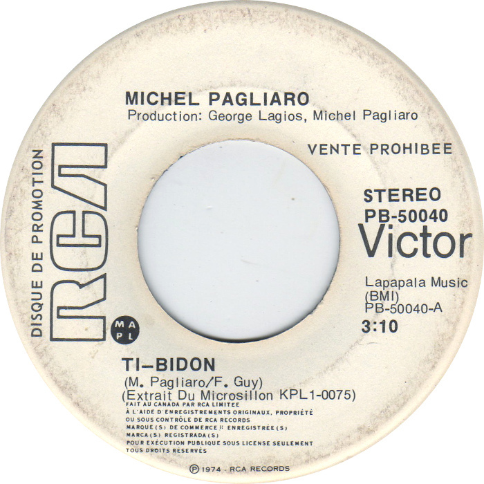 Michel Pagliaro - Ti-bidon b/w Fievre Des Tropiques (promo)