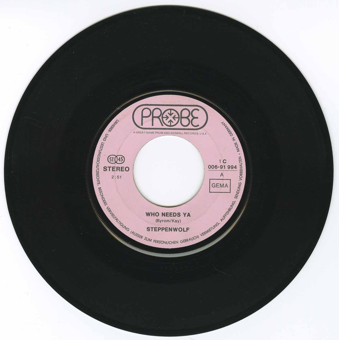 Steppenwolf - Who Needs Ya b/w Earschplittenloudenboomer (picture sleeve)