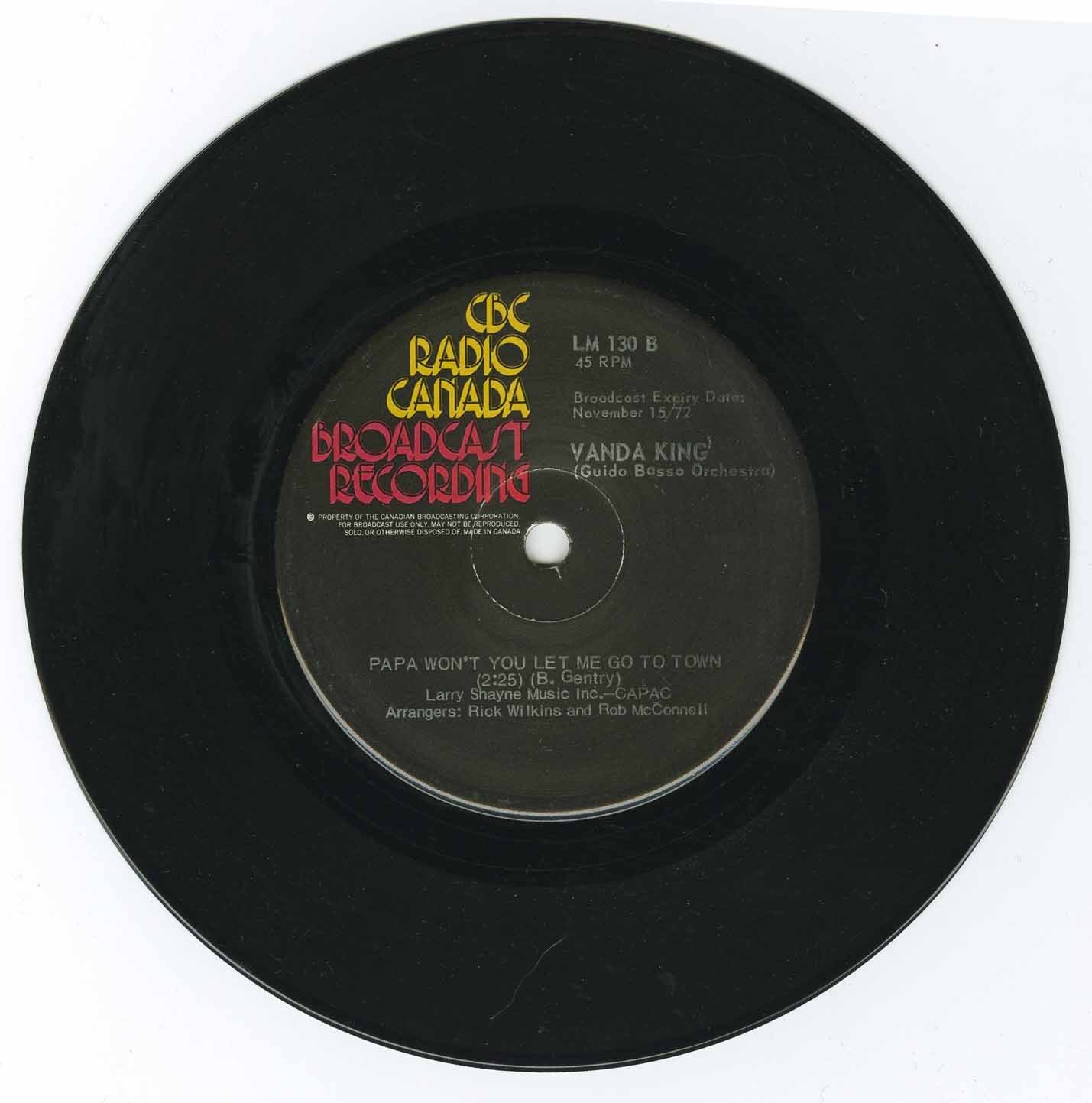 King, Vanda - In a Long White Room b/w Papa Won’t You Let Me Go to Town (with The Guido Basso Orchestra)