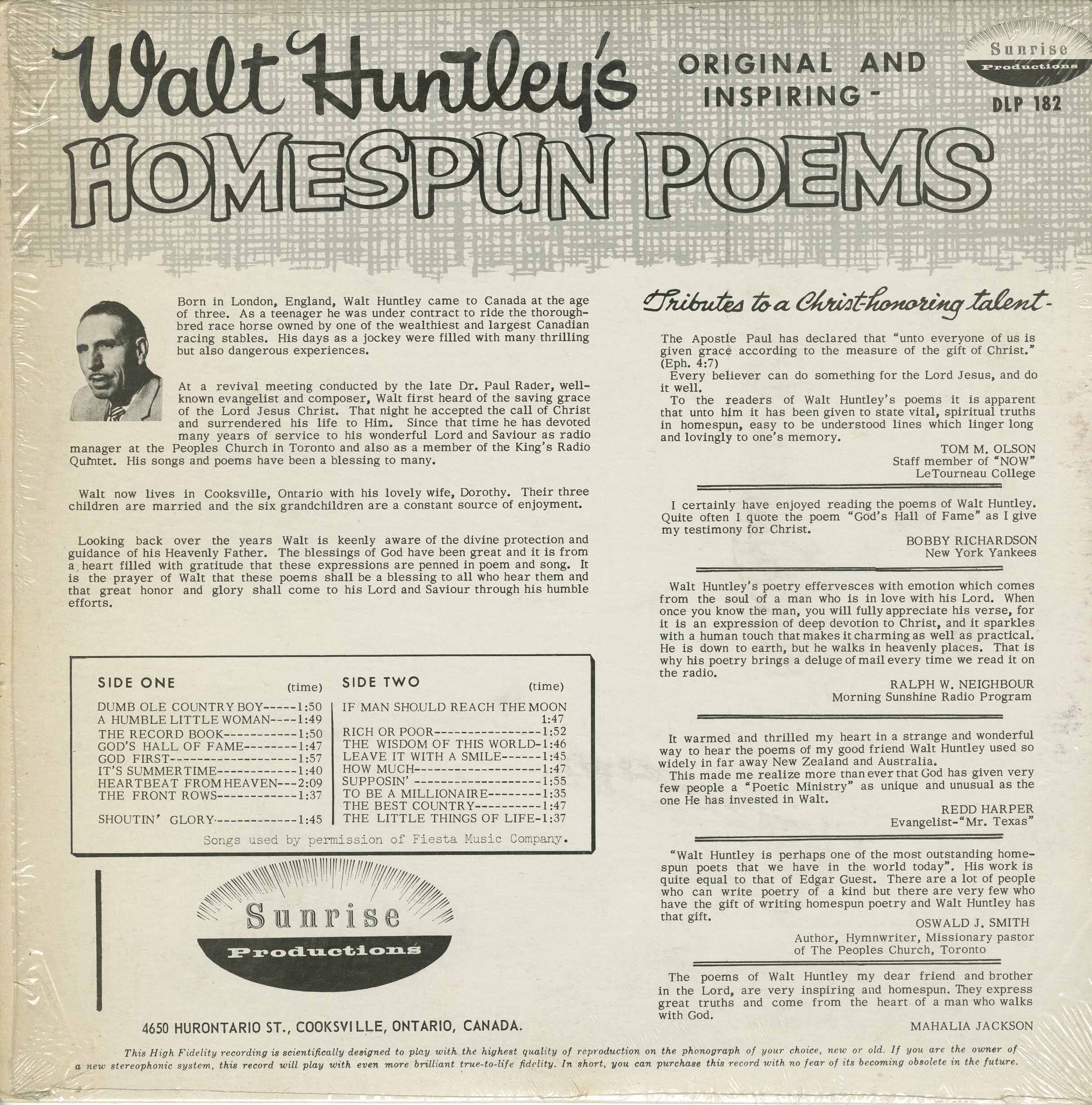 Label: Sunrise Productions DLP 182