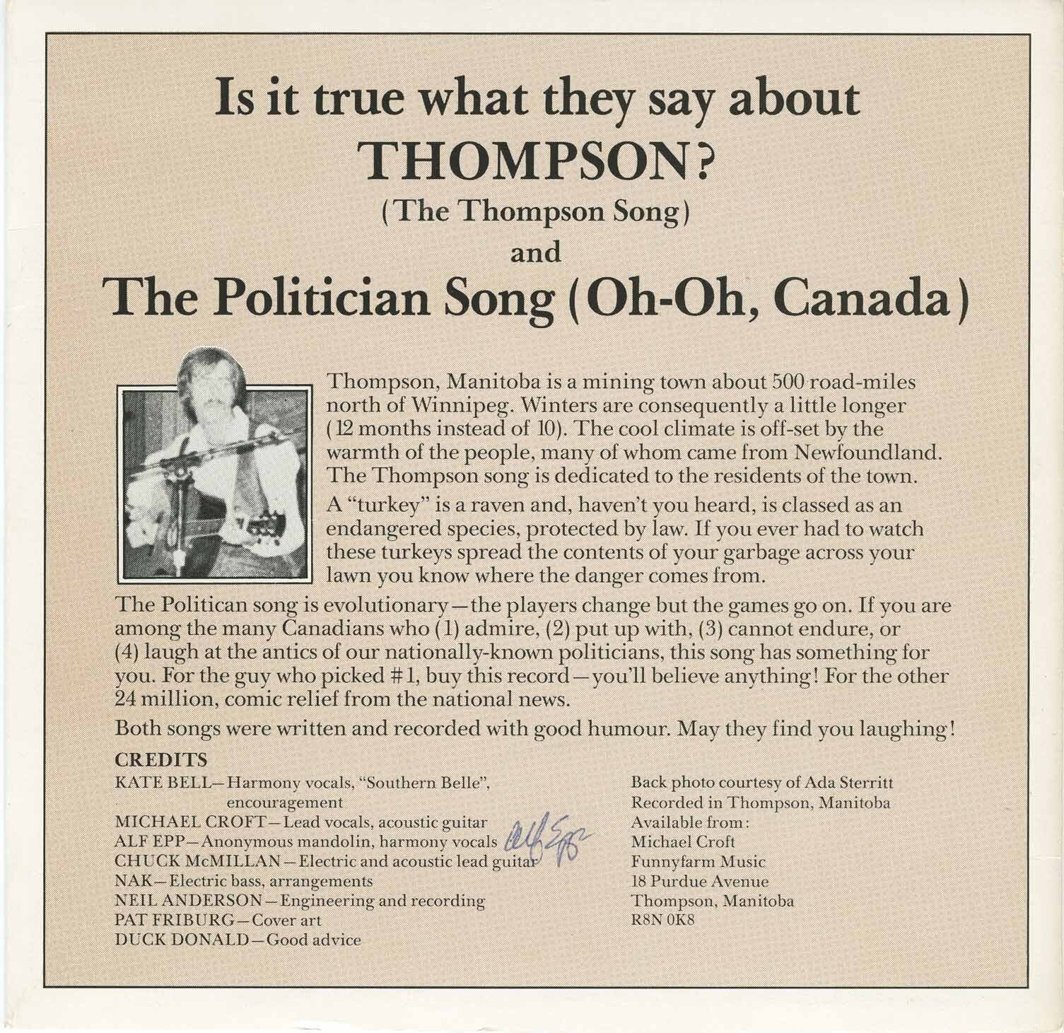 Croft, Michael - Is It True What They Say About Thompson? (picture sleeve)