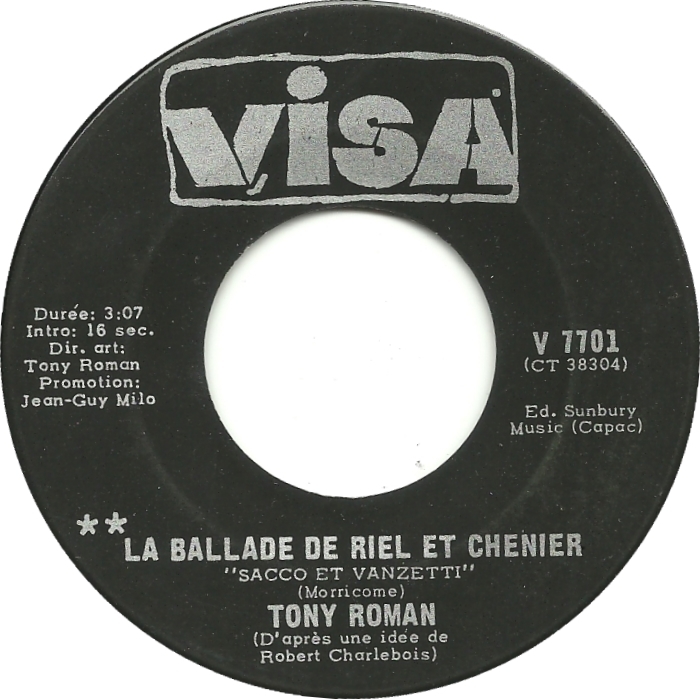 La Ballade De Riel Et Chenier (Sacco Et Vanzetti) (Tony Roman) b/w Ah ! Comme On S'ennuie