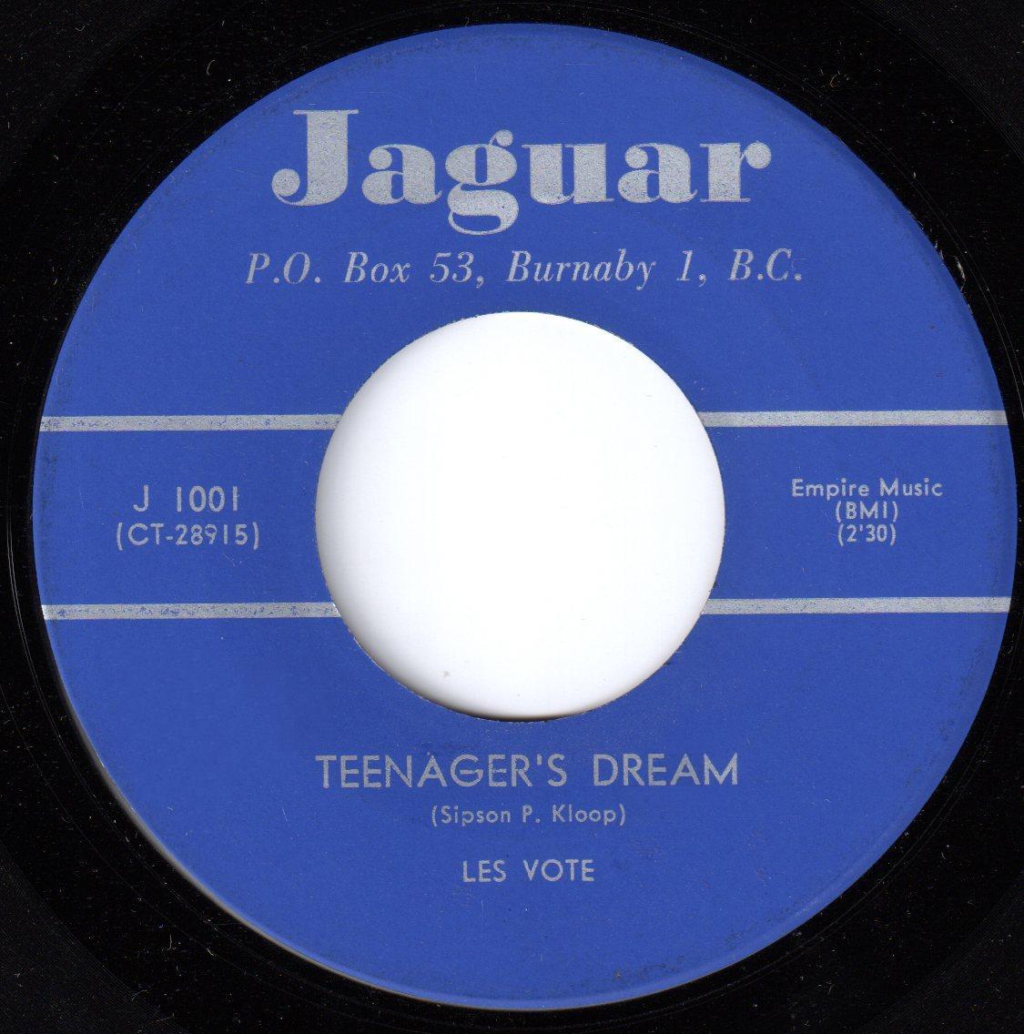 Buy directly from Artist:  https://vancouversignaturesounds.com/hits/teenagers-dream-by-les-vogt/les-vote-teenagers-dream-45-jaguar-canada-jpg/