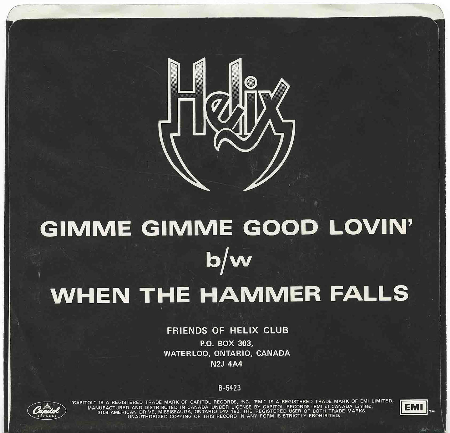 Helix - Gimme Gimme Good Lovin' b/w When the Hammer Falls
