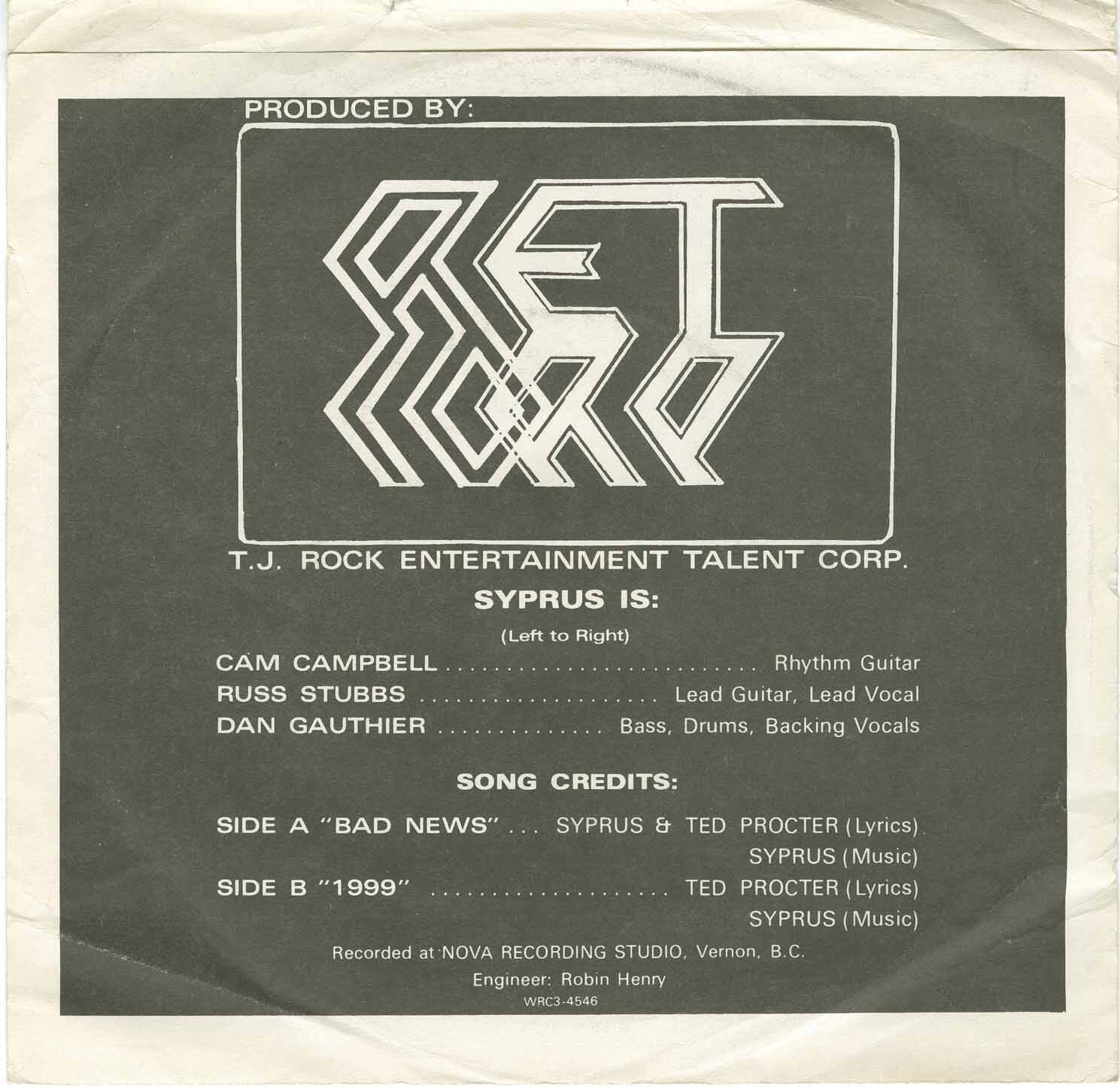 Recorded at Nova Recording Studio, Vernon, British Columbia