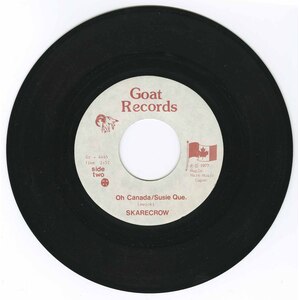 George, Krys, Ace and Wolf brought in Sudbury drummer Moe Leblanc and became “Skarecrow” (as they said on a Halifax radio interview, “…to be out–standing in their field”). The first single on their indie record label Goat Records GR 4444 was ….“Wrong This Time” b/w “4 Minutes After 9”… (As listed by) Skarecrow