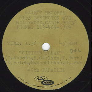 This single marks the first widely distributed release from 49th Parallel and remains one of their most memorable recordings. Although the band would later explore more psychedelic and melodic directions, She Says and Citizen Freak preserve the raw spark of their early period in Calgary, when a group of young musicians managed to carve out their place in the growing Canadian rock landscape.