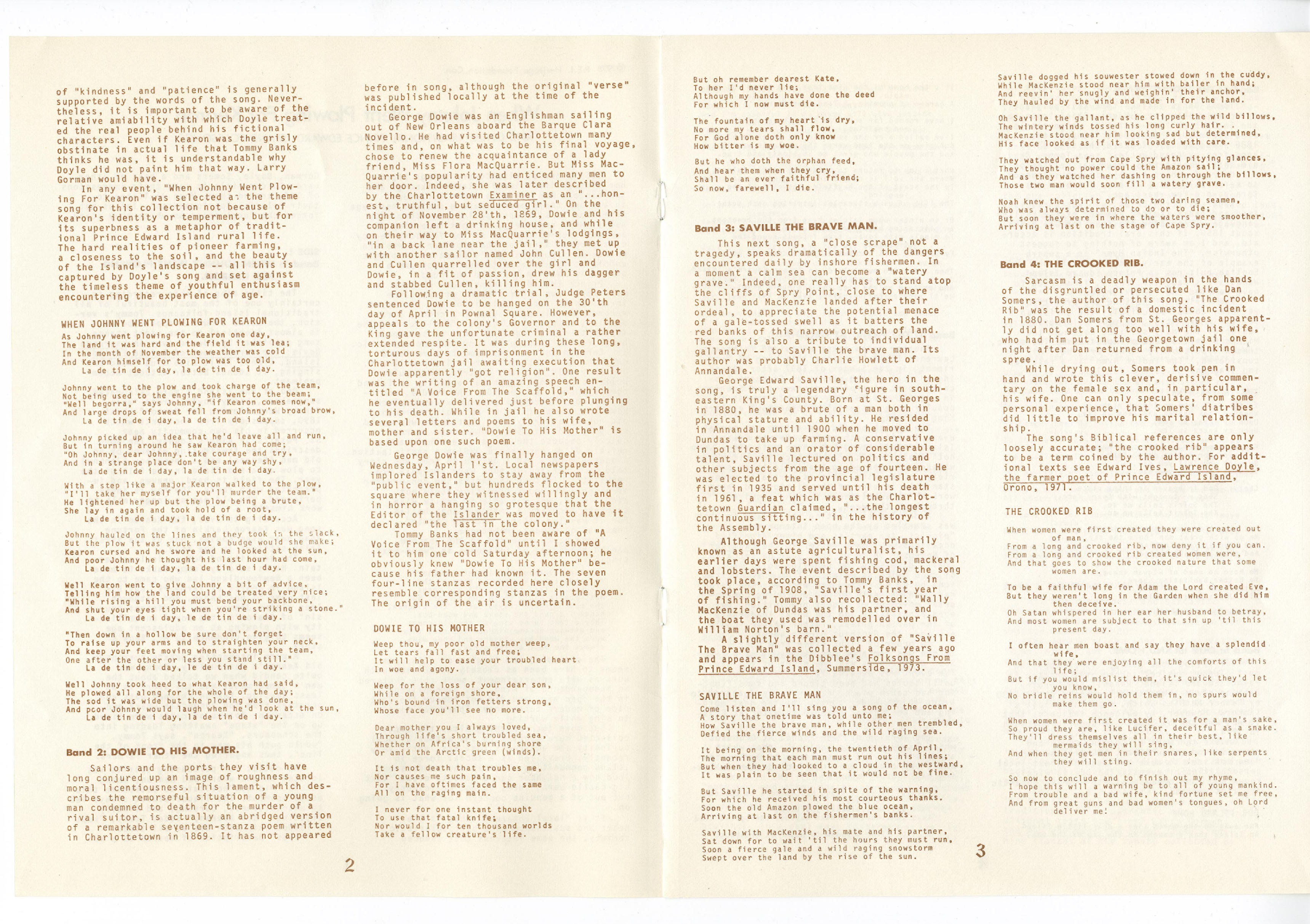 Folk, Prince Edward Island, Folklore, 1970's