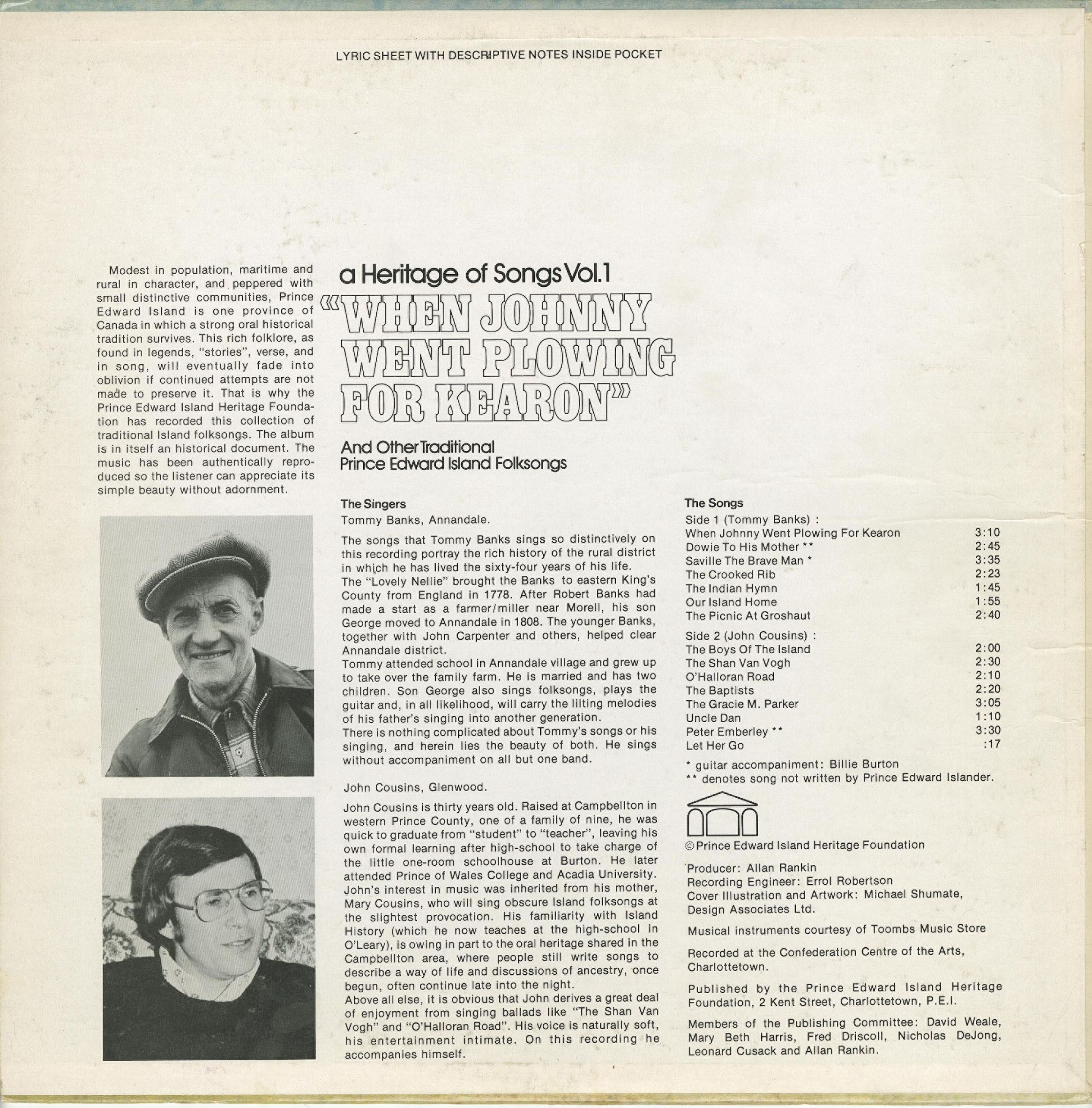 Banks, Tommy and John Cousins - A Heritage of Songs Vol. 1: When Johnny Went Plowing for Kearon And Other Traditional Prince Edward Island Folksongs