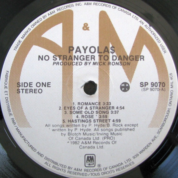 Their breakthrough came with 1982’s No Stranger to Danger, produced by Mick Ronson. The album’s lead single “Eyes of a Stranger” became one of the defining Canadian hits of the decade, earning JUNO Awards for Single of the Year and Best New Group. Ronson’s involvement broadened their sound without flattening their edges; the production found a balance between moody synth textures, biting guitar, and a rhythm section that retained the looseness of their early club work. The album placed Payolas alongside Canada’s top alternative-leaning acts while preserving their underlying grit.