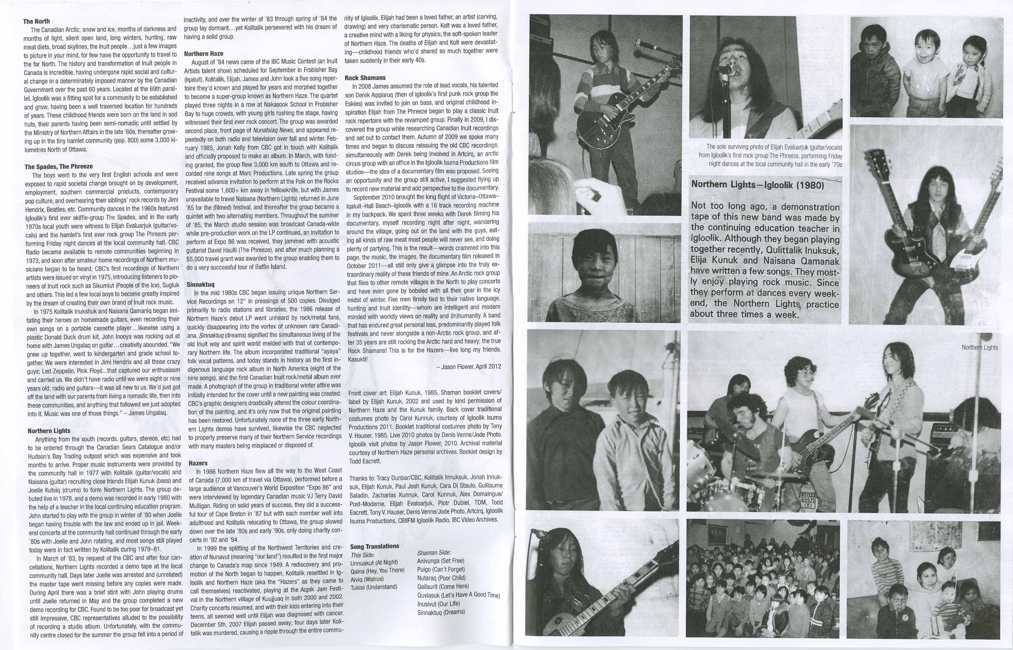 Northern Haze were a rock and roll band unlike any other, with all members born and raised in Igloolik, Nunavut. The lineup of Kolitalik Inukshuk, James Ungalaq, Elijah Kunnuk, and John Inooya grew up in one of the most remote communities in Canada, where music was as much a part of daily life as hunting and storytelling. Starting out on toy instruments and homemade gear, they developed into a tight, powerful unit whose playing carried the grit and drive of classic garage rock while staying true to their own traditions.