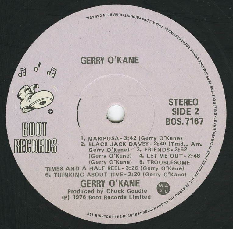 Gerry O’Kane’s body of work—spanning a rare Boot Records LP, two independently issued live cassettes, and decades of performances in pubs and halls—reflects a life dedicated to music, friendship, and the timeless spirit of Irish-Canadian storytelling.