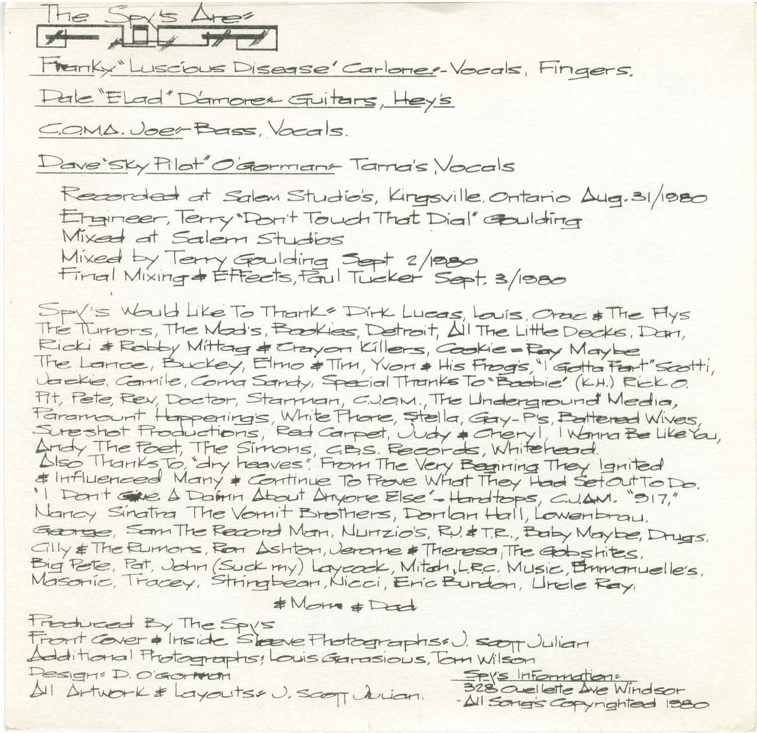 Spy's - Underground b/w Machine Shop (white picture sleeve)