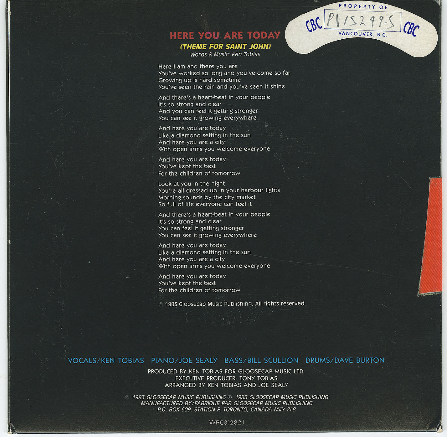 Label: Glooscap Music, World Record Corp. WRC3-2821