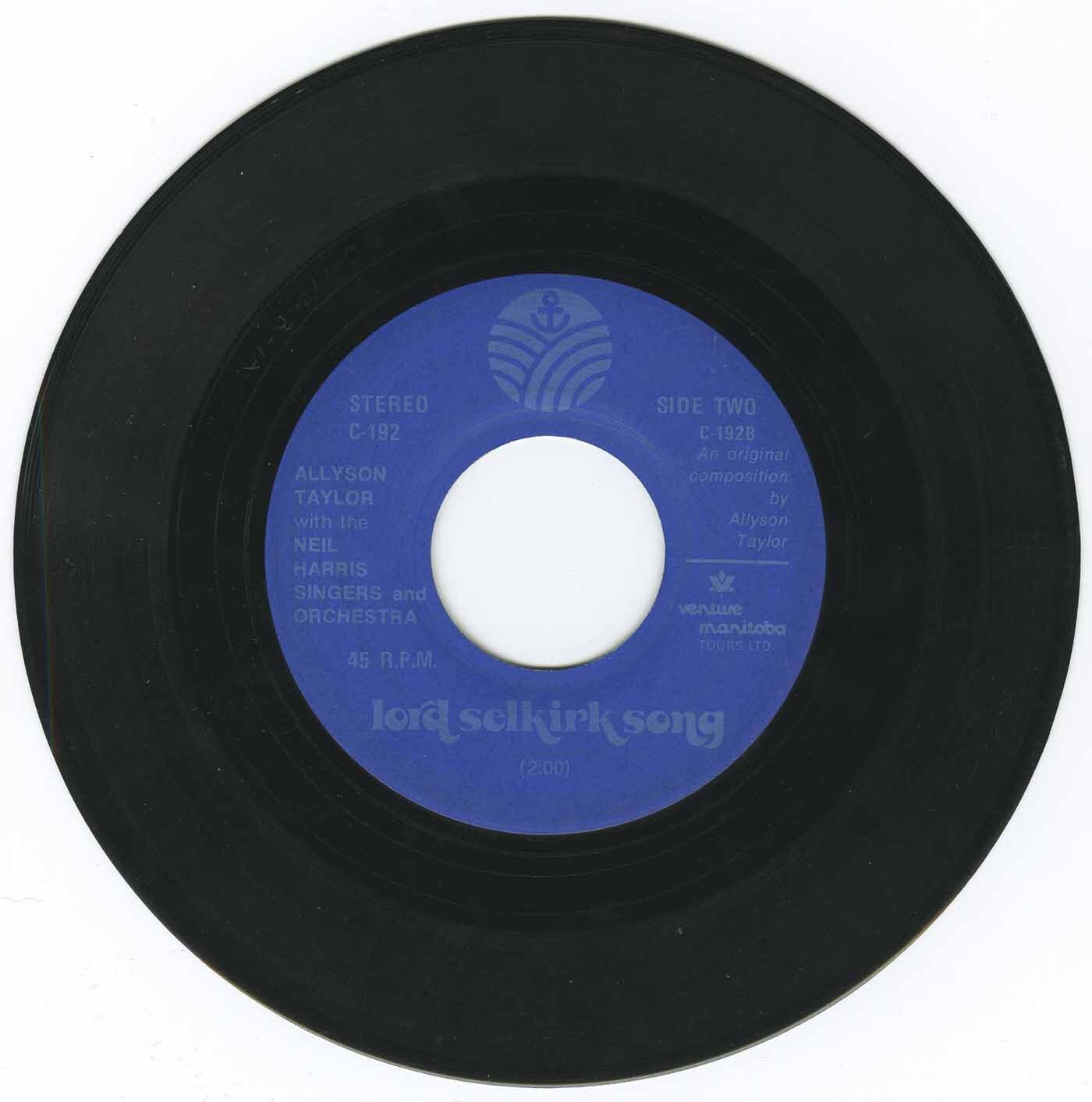 Taylor, Allyson and Neil Harris Singers & Orchestra - Manitoba Cities, Manitoba Towns b/w Lord Selkirk Song (picture sleeve)