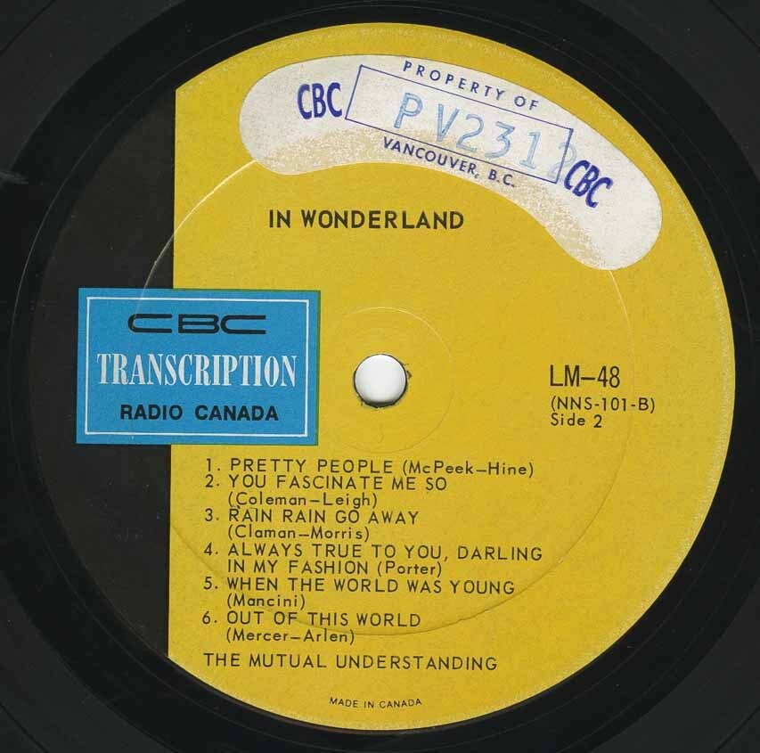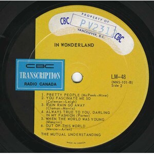 The Mutual Understanding also recorded Christmas with Rick Wilkins and the Mutual Understanding in 1970 on CBC Radio Canada as well as two rare 45’s: “Wonderland b/w Pretty People” on Nimbus 9 and the non-LP 7”: “Show Me Your Laughter b/w Summer of '42” on CBC Radio Canada.