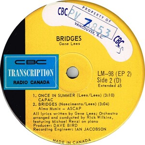 Lees, Gene - What in the World/ Foot Steps b/w Once in a Summer/ Bridges