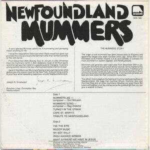 This album was endorsed on the back by Joe Smallwood in Conception Bay. Here is what Joey Smallwood had to say: A very talented Mummer asked me if mummering and jannaying meant anything to me. I recall the days before television when Radio wasn't too good, but provided the only source of entertainment other than School concerts or the odd dance. From December 26th (Boxing Day) to January 6 (Old Christmas Day) the mummers came in their disguises made of old flour sacks and other get ups that made for a guessing game. Dancers, musicians young and old, came to the door offering live entertainment at its best. Here in this album are Mummers hoping to jog your memories while getting you into a good mood for the New Year. It should bring a smile to your face while spreading happiness around Newfoundland-style.