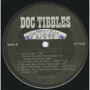 Doc Tibbles plays like a man possessed. His ability to create instant fusion with a flat-pick guitar is unique in this country. Thunder Bay born, this rough-hewn but gentle man has been picking and singing his way across continents and oceans with his own brand of country, bluegrass, folk, and outlaw music. A seasoned performer, songwriter, and lyricist, he plays banjo, bass guitar, and a multitude of stringed instruments. But it's his incredible guitar playing that has won his audiences both country and city. He is indeed a man for everyone!