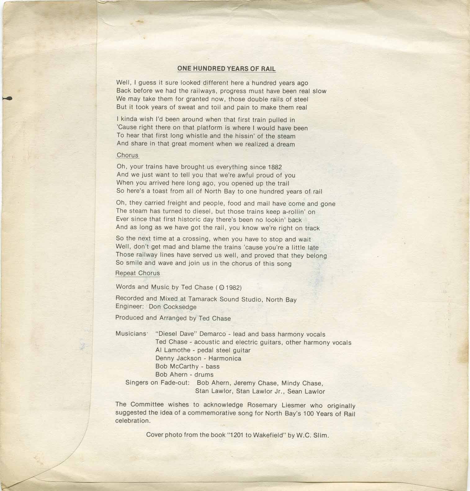 Diesel Dave And The Extra Gang - 1882 - 1982 One Hundred Years of Rail (picture sleeve)