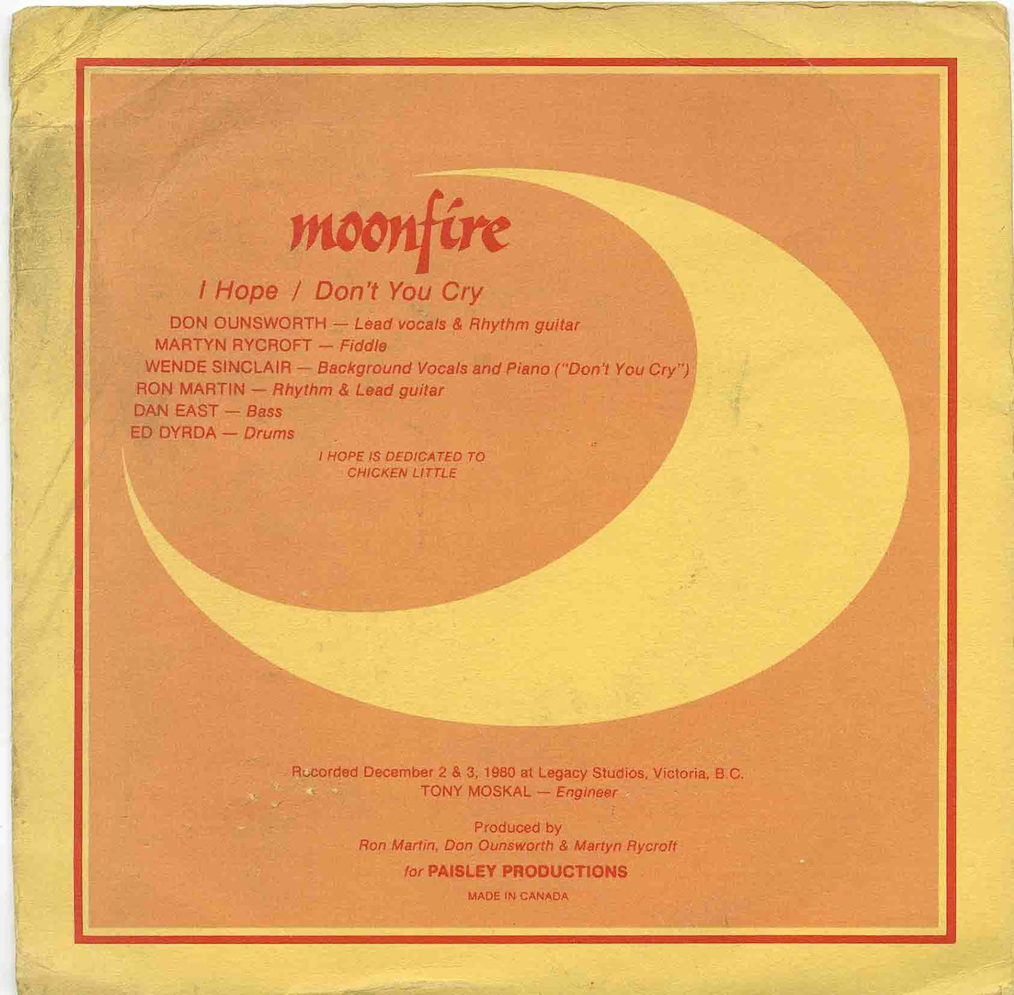 Moonfire - I Hope b/w Don’t You Cry