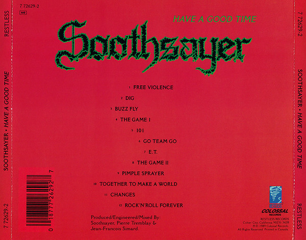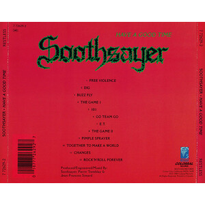 Perhaps the biggest thing counting against Soothsayer was their grasp of English. It's a little tenuous at the best of times, and utterly hilarious when they really fuck things up. On "Buzz Fly" for example, "Now my fly said I'm hungry, it can't eat pizza and Pepsi/Pet shop doesn't have the food, so I give it seven toast crumbs". The pet fly in that song was so depressed about the state of the world it committed suicide. Elsewhere, there is a tale of a pizza–faced teenager, his affliction caused by eating too much pizza, who sprays zit juice on people he doesn't like. There is a more serious side too. "101" is sung mainly in French, about retaining French language in the Canadian province of Quebec.