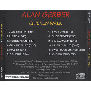 Gerber's career spans three decades, starting as front man of the group Rhinoceros many years ago. He toured along side BB King, John Lee Hooker, Procol Harum, The Moody Blues, Chuck Berry, Little Richard, Canned Heat, Jeff Beck. He has written songs for Bob Dylan's film 'Renaldo and Clara' and Written and directed scores for children's productions. Alan Gerber's current efforts include the recording of several solo albums. (Chicken Walk, Fools That Try, Boogie Man & Alan Gerber Live For A Limited Time Only.) These albums scored 5 stars and the "Top Pick" seat in Hour Magazine with heavy airplay on radio worldwide.
