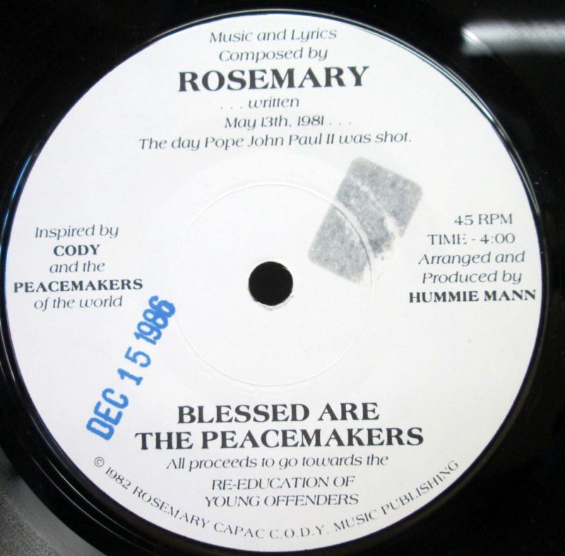 Side A was written in honour of Rick Hansen. Side B was written to commemorate the failed assassination attempt of Pope John Paul !!. All proceeds went to charity.