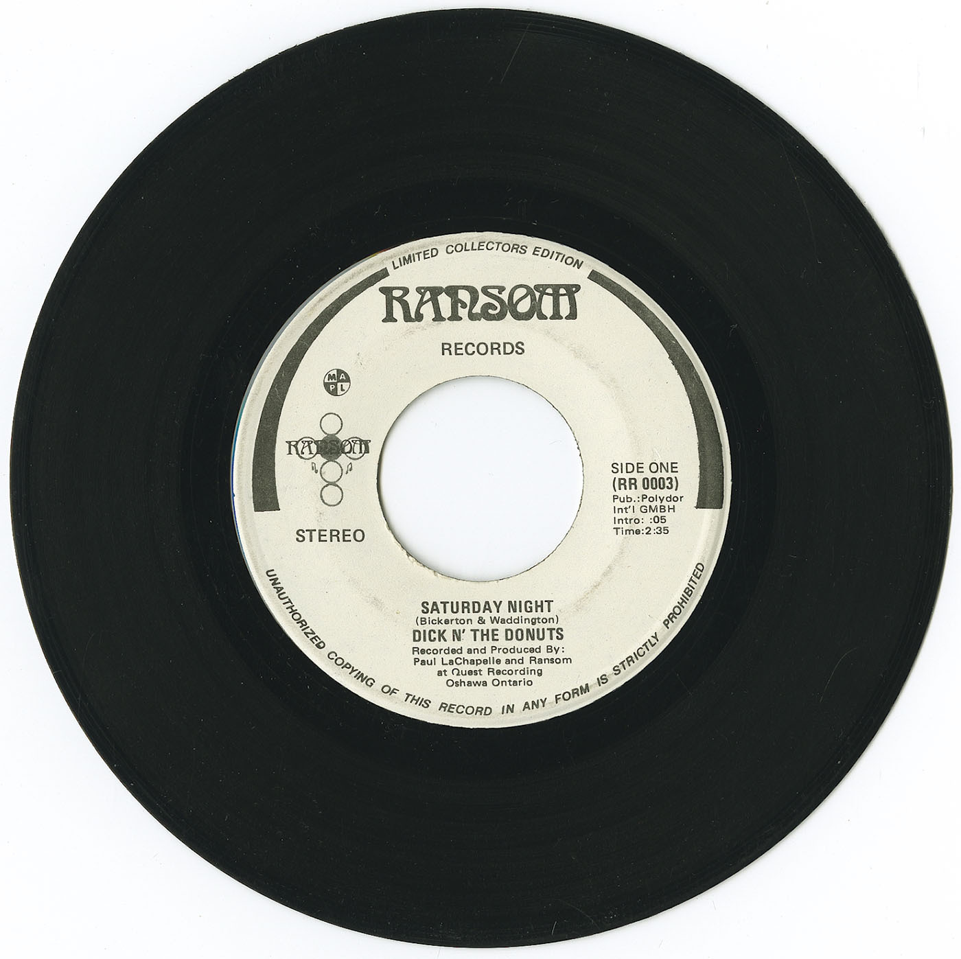 Recorded and produced by Paul LaChapelle and Ransom at Quest Recording, Oshawa, Ontario