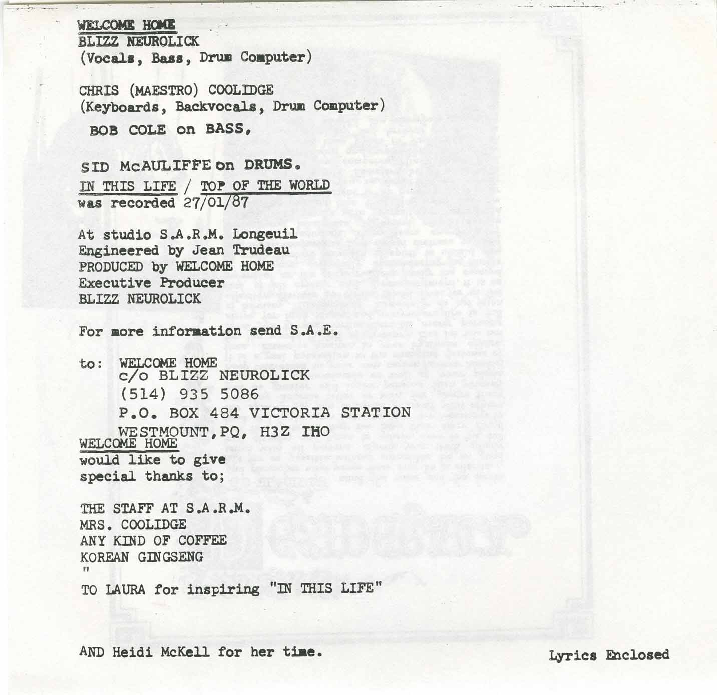 Welcome Home - In This Life b/w Top of the World (picture sleeve)