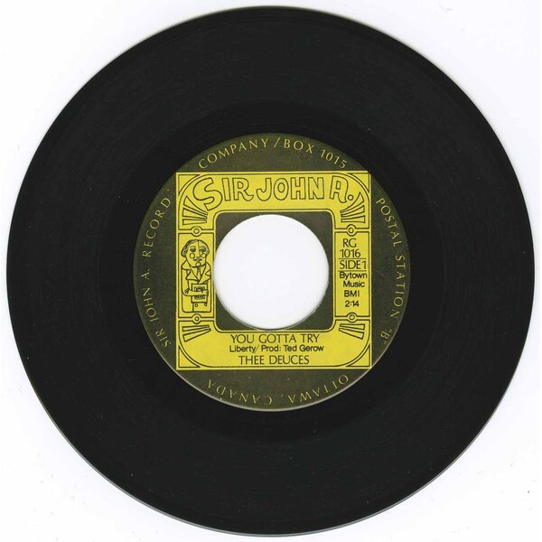 Originally from the small town of Almonte (about 40 km southwest of Ottawa), Thee Deuces started out as an instrumental combo in 1964. A forty-seven-week residence at the Inter-Provincial Hotel across the river in Hull, Québec allowed them to seriously hone their skills. In 1965, they relocated to Ottawa and acquired a manager in Don Billows, the owner of the Oak Door Club. It was also around this time that the band were approached by a Hollywood producer, who offered them a role in one of his teen exploitation movies. They had to refuse, however, when they realized that the deal required them to make their own way out west to California. The band signed on to John Pozer’s fledgling Sir John A imprint, which simultaneously released their ‘You Gotta Try’ along with ‘Low Man’ by Don Norman & The Other 4 on November 29, 1966.