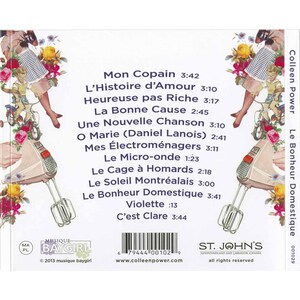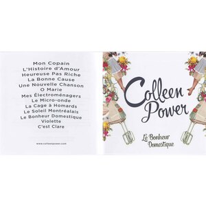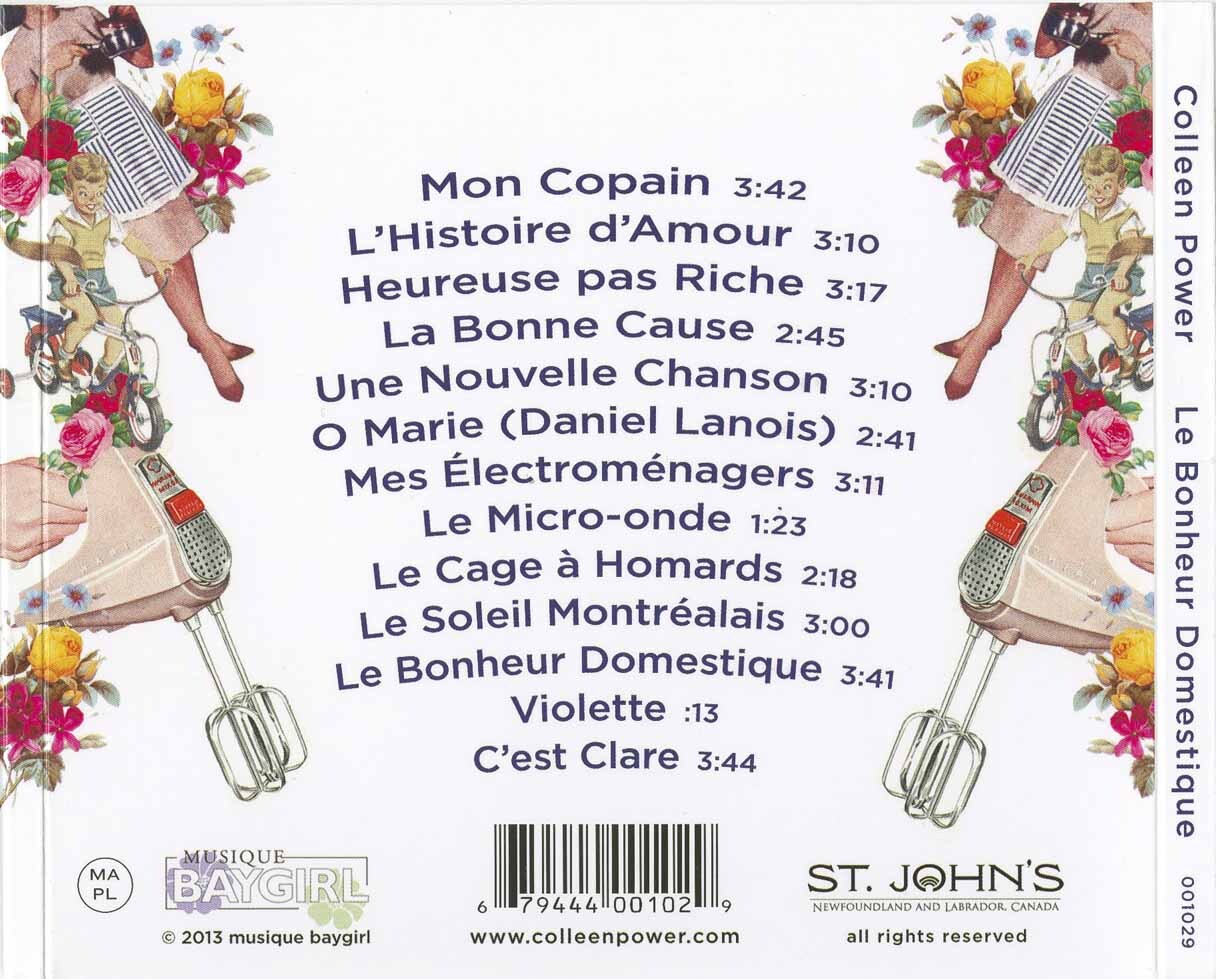 One song is an actual exercise in French pronunciation (about appliances), and there’s use of some experimental recordings, which Power said was a lot of fun. The vacuums, fridge door, microwave and toaster are all featured at some point on the record, in songs which range from pop to rock to French café-style to what Power calls “Retro Housewife.” There are eight original songs written by Power, three co-written with people like Sandy Morris and Aneirin Thomas, and a version of Daniel Lanois’ “O Marie.”