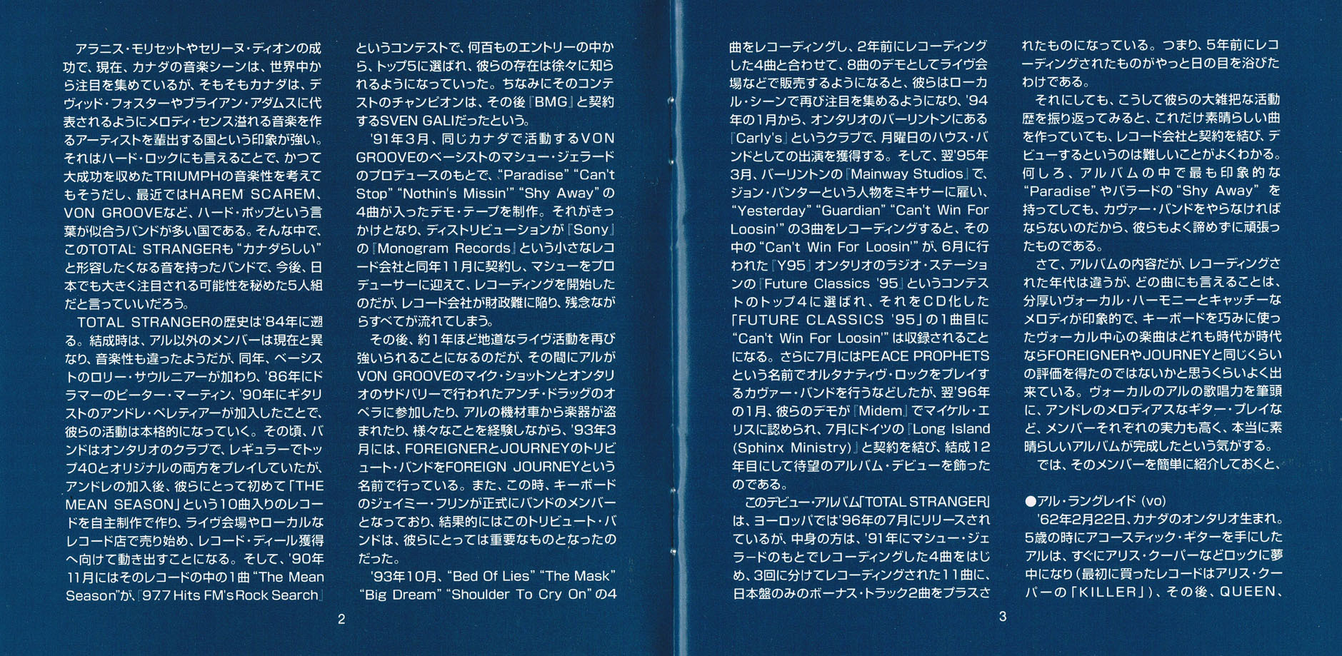 Originally formed in Hamilton, Canada during 1985, TOTAL STRANGER split up several years ago and have remained largely inactive ever since. Their self-titled album "Total Stranger" was originally released in 1997. It was recently reissued which is why I am reviewing it today.