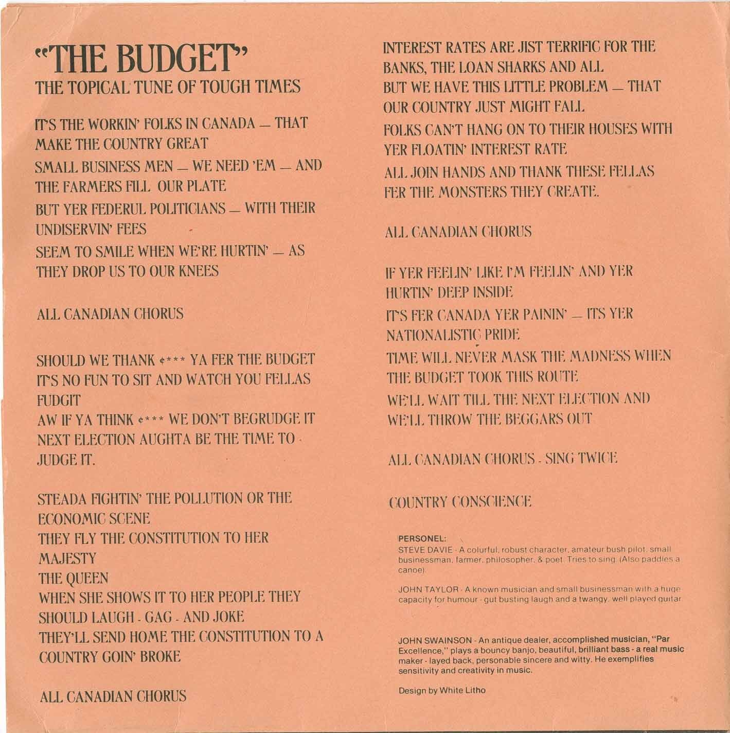 Country Conscience - The Budget b/w Bosz Hoag