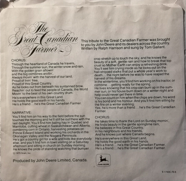 Gallant, Tom - The Great Canadian Farmer (picture sleeve)